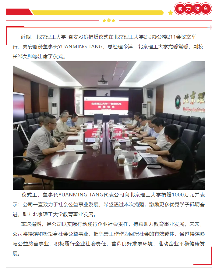 踐行社會(huì)責(zé)任,助力教育發(fā)展——秦安股份向北京理工大學(xué)捐贈(zèng)1000萬(wàn)元